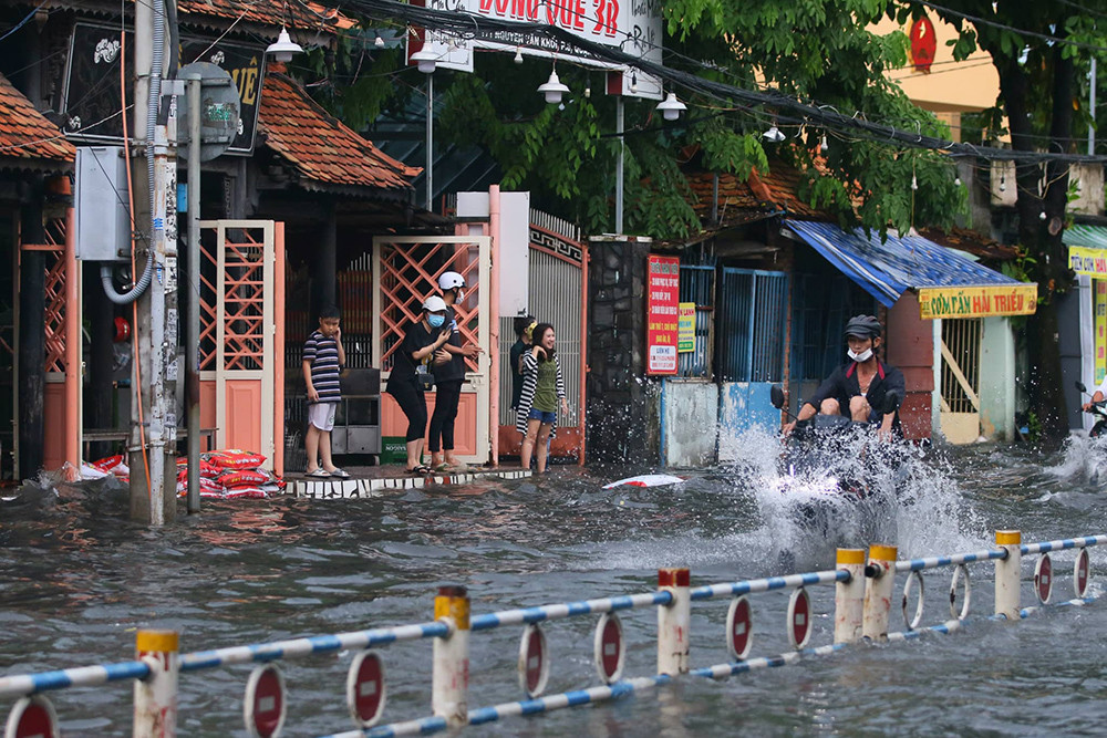 Cơn mưa giông bắt đầu từ khoảng 15h30 và nhanh chóng lan rộng ra nhiều quận, huyện ở TP.HCM. Nhiều giờ sau đó, các khu vực vùng trũng ngập nước mênh mông như đường Nguyễn Văn Khối, Phạm Văn Chiêu, Lê Văn Thọ (quận Gò Vấp); Nguyễn Văn Quá, Song Hành, Phan Văn Hớn (quận 12)...