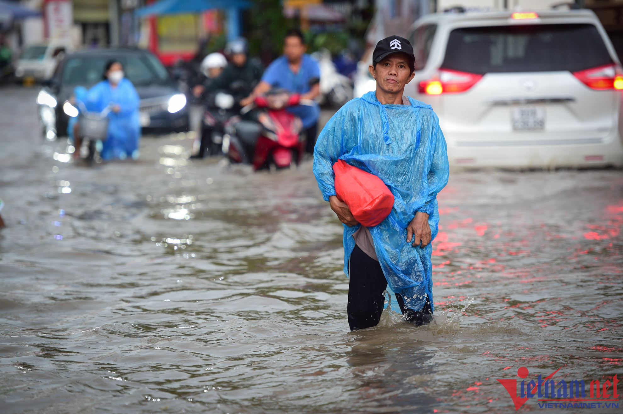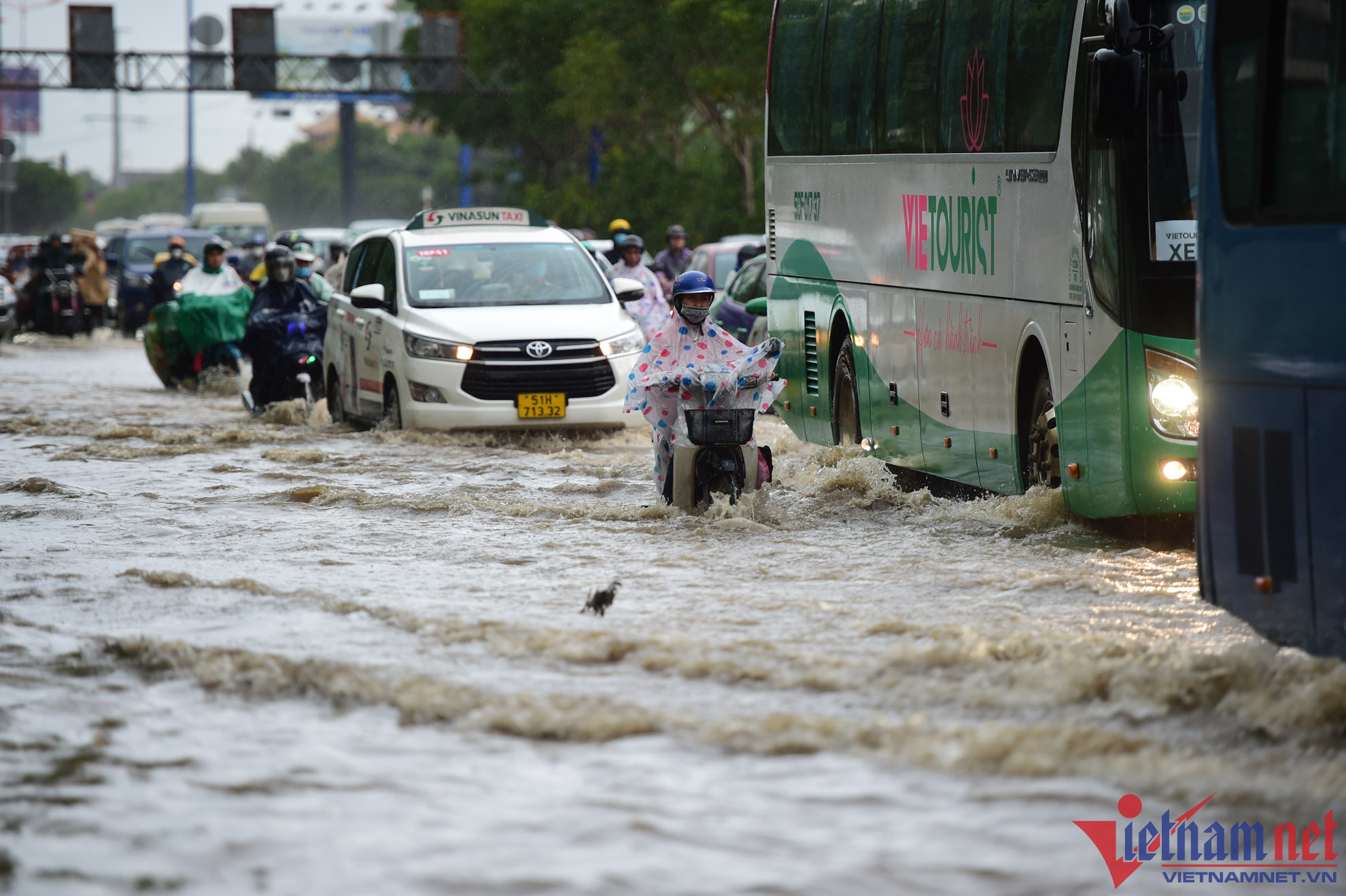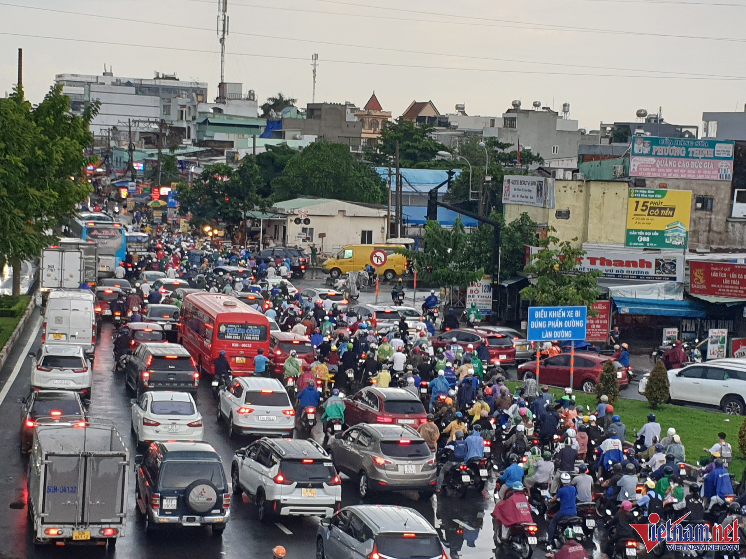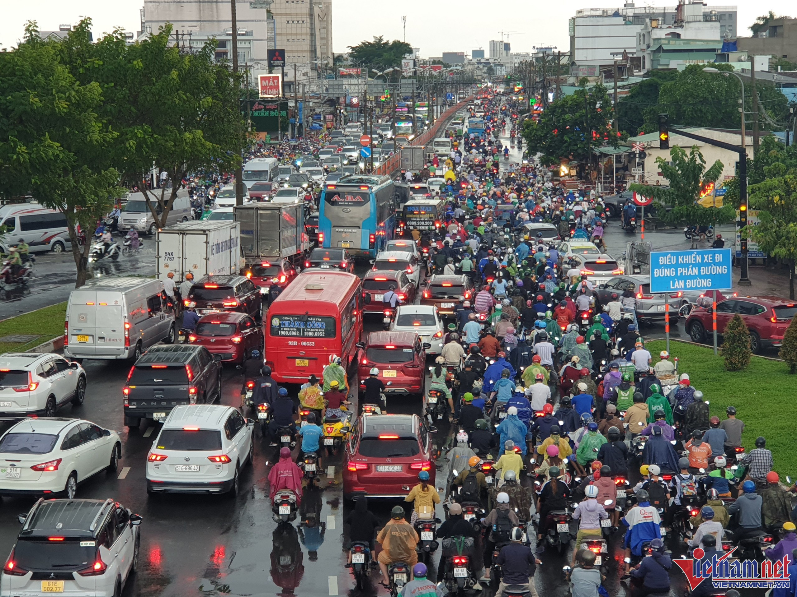 Mưa lớn kết hợp đường ngập khiến nhiều tuyến đường bị kẹt xe. Trong đó, kẹt nặng nhất là đường Quốc lộ 1 và Đinh Bộ Lĩnh (đoạn từ cầu Bình Triệu kéo dài qua khỏi bến xe Miền Đông), hàng nghìn phương tiện phải chôn chân, di chuyển rất khó khăn.