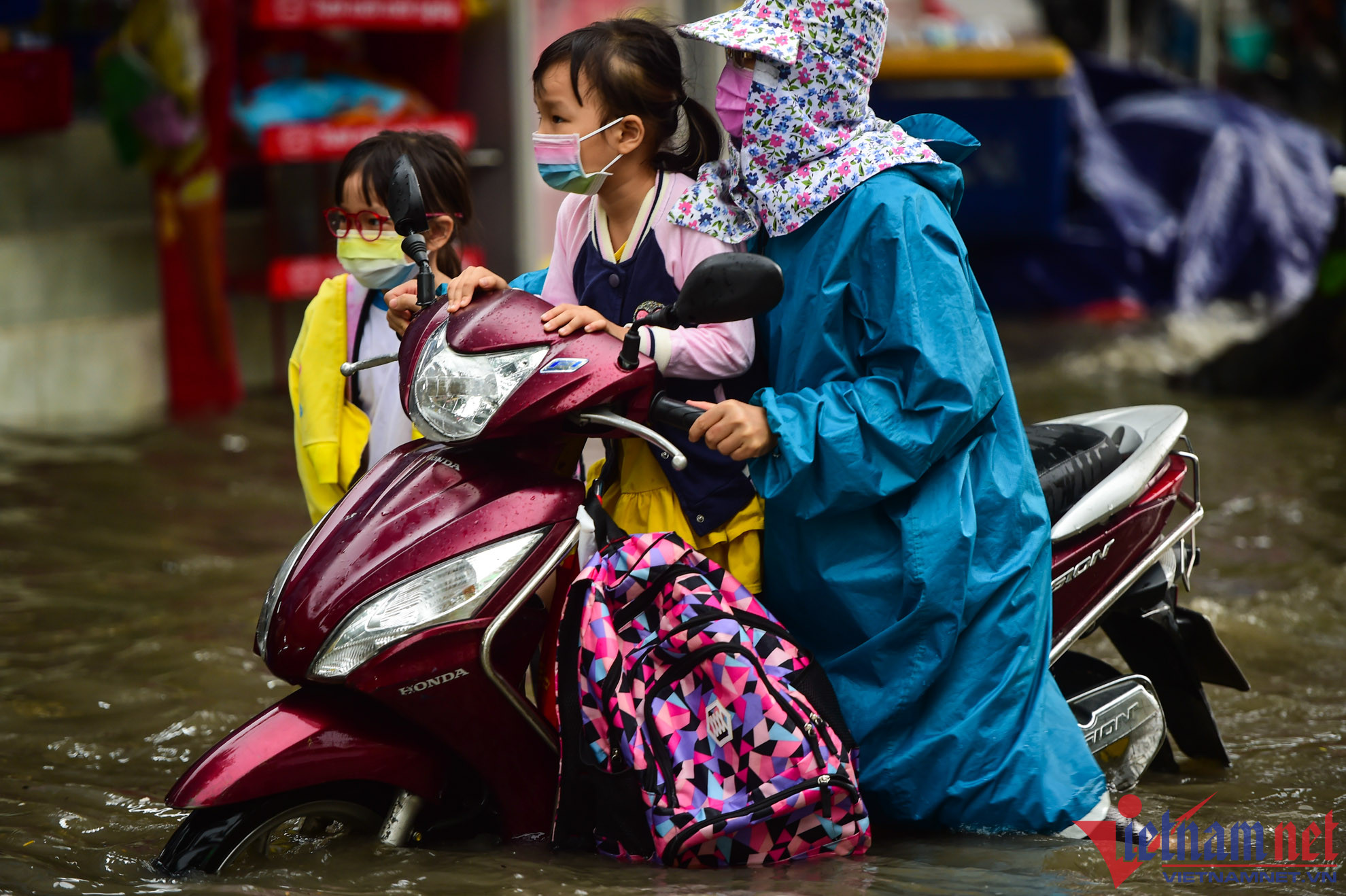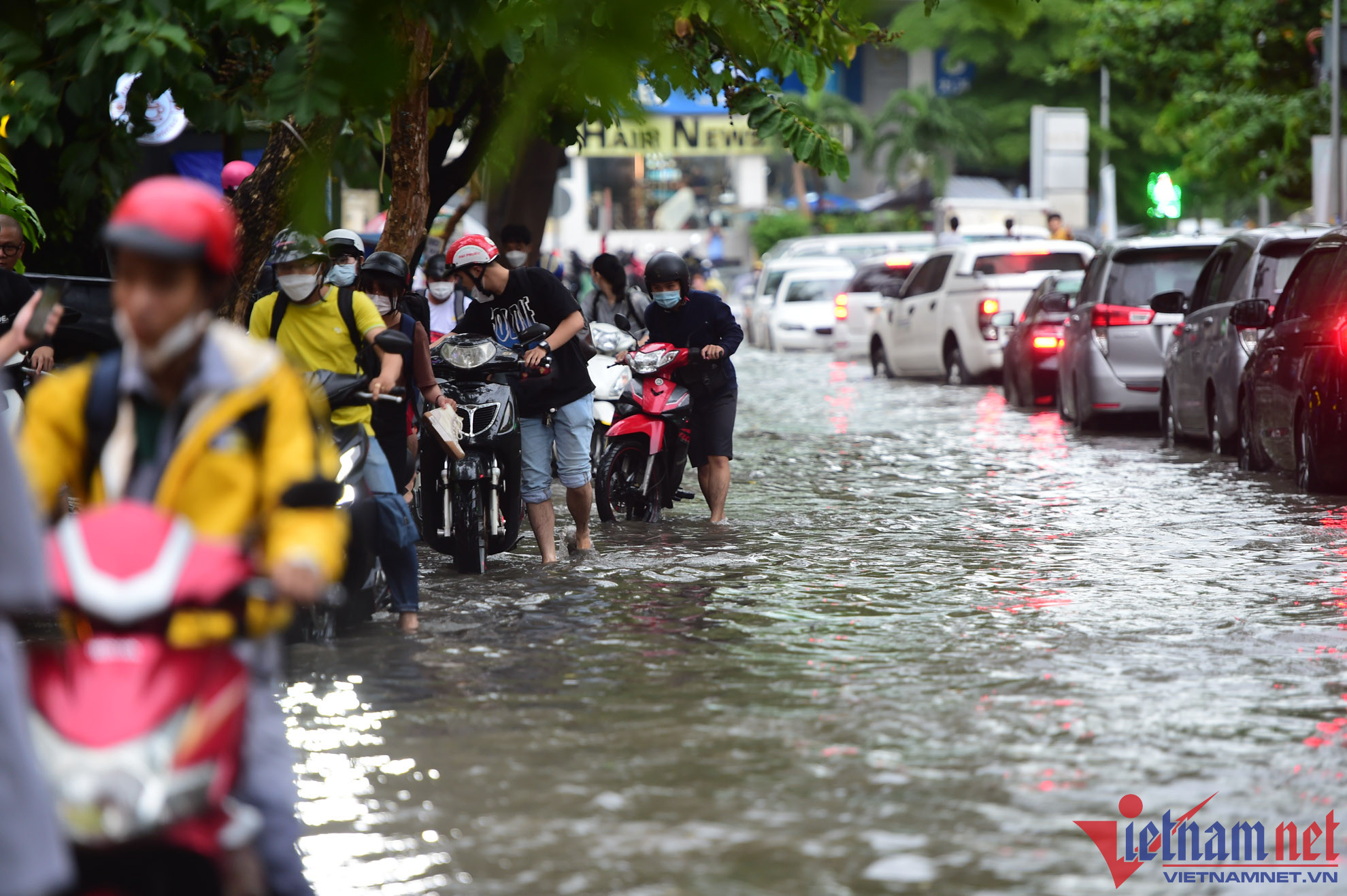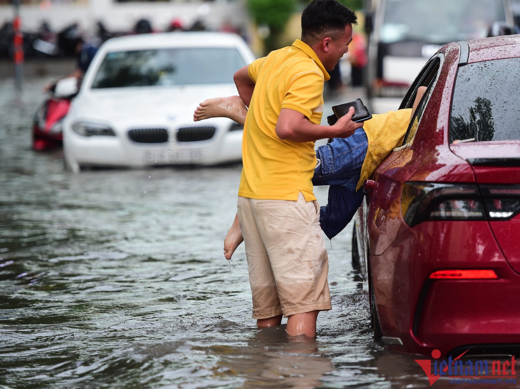 Chị Quyên đưa con đi học từ TP Thủ Đức về băng qua đường ngập Thảo Điền sau cơn mưa chiều 22/6Người dân bì bõm lội nước về nhà sau cơn mưa lớn chiều 22/6 trên đường Thảo ĐiềnNgười dân vất vả di chuyển qua đường ngập Quốc HươngNhiều ô tô chết máy