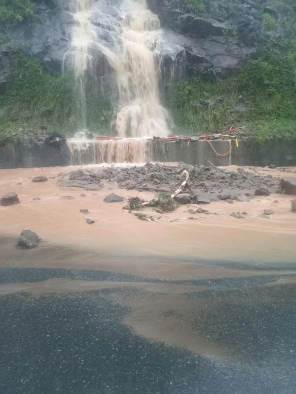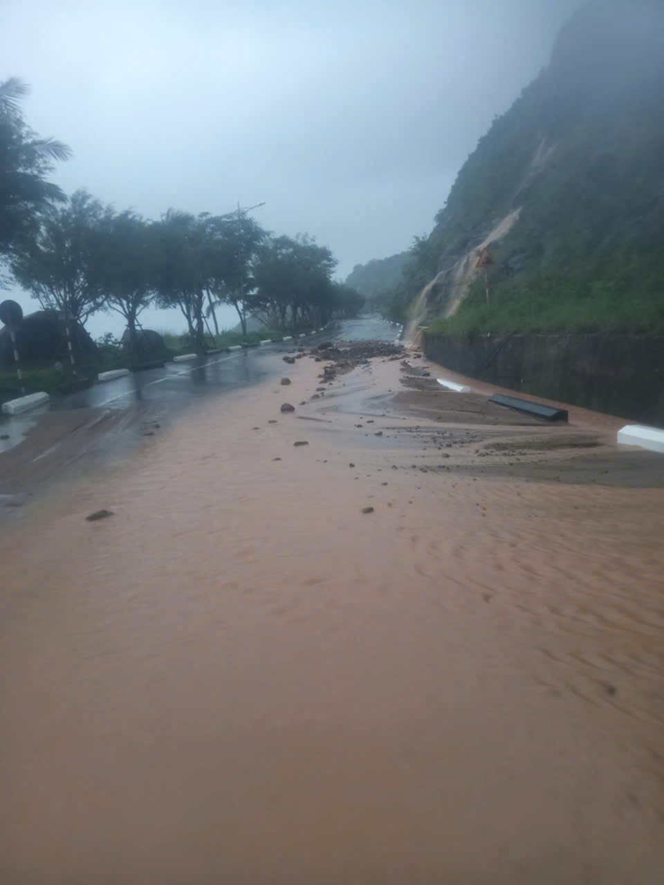 Cũng trong sáng nay, mưa lớn khiến đường lên bán đảo Sơn Trà xảy ra sạt lở. UBND quận Sơn trà đã yêu cầu lực lượng chức năng liên quan tổ chức việc cấm đường, cấm người và các phương tiện lưu thông trên bán đảo Sơn Trà (trừ xe công vụ). Thời gian tạm dừng lưu thông từ 8h sáng nay cho đến khi có thông báo mới. Ảnh: CTV
