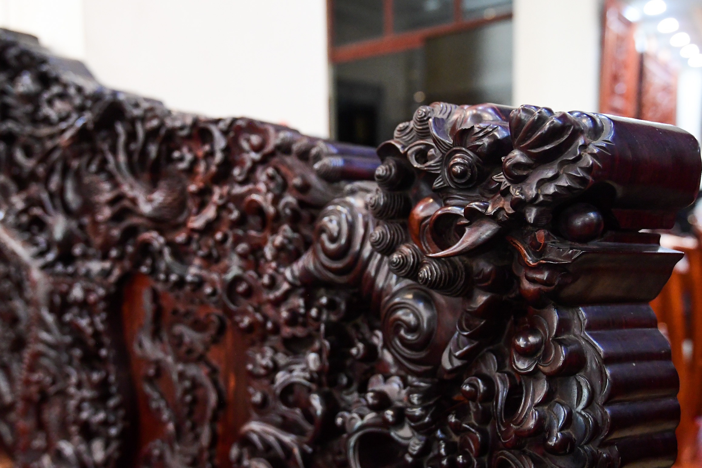 Hàng nghìn chi tiết, hoa văn, hình khối của bộ bàn ghế này được làm thủ công.