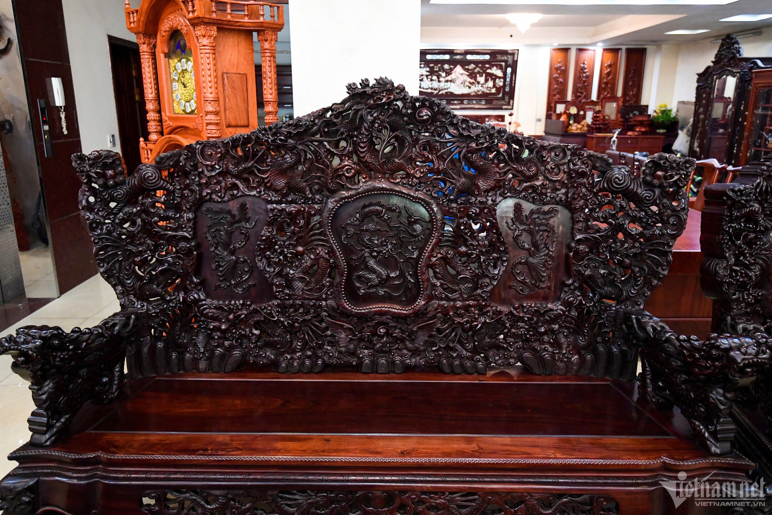 Bộ bàn ghế được đặt tên là “Cửu long bát mã” bao gồm 10 loại làm từ gỗ Trắc được nhập từ Lào, giá 5 tỷ đồng. Sản phẩm này có hàng nghìn chi tiết, hoa văn, hình khối và hoàn toàn làm kiểu thủ công. Theo người bán hàng, sở dĩ nó đắt vì là loại gỗ khi càng ngồi nhiều càng bóng và đẹp, cách làm cũng tỉ mỉ, công phu, mất nhiều tháng mới hoàn thiện.