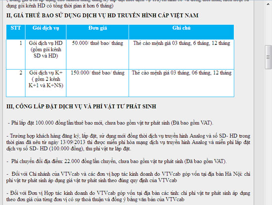 Chị Hương nói: "Xem bài viết và nội dung banner quảng cáo, tôi đinh ninh nếu mình đăng ký dịch vụ HD sẽ chỉ đóng cước phí thuê bao là 50.000 đồng/tháng". Cẩn thận hơn chị Hương vào các bài đăng trên trang web vtvcab.vn để tìm hiểu tiếp thì thấy nhà đài này cũng công bố công khai giá thuê bao dịch vụ truyền hình HD là 50.000 đồng/tháng.