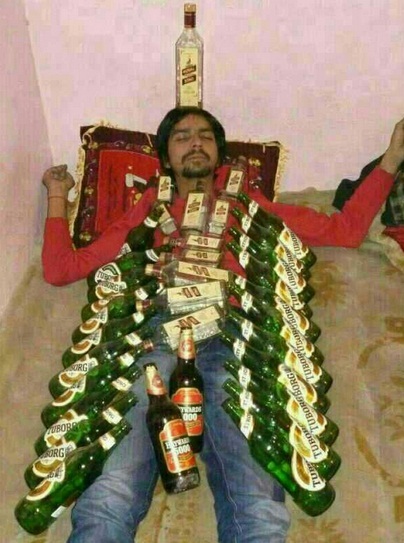 Người đàn ông Ấn Độ này ngả mình giữa những cái vỏ chai bia với hy vọng giải tỏa bớt phần nào cái khó chịu của mùa hè. (Ảnh Bajiroo) |