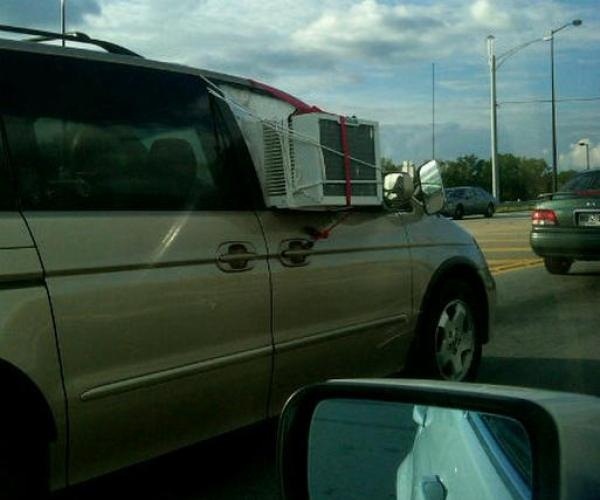 Có vẻ như điều hòa ôtô vẫn chưa đủ mát, nên người chủ chiếc xe đã phải gắn thêm một chiếc điều hòa nữa. (Ảnh: Atchuup) |