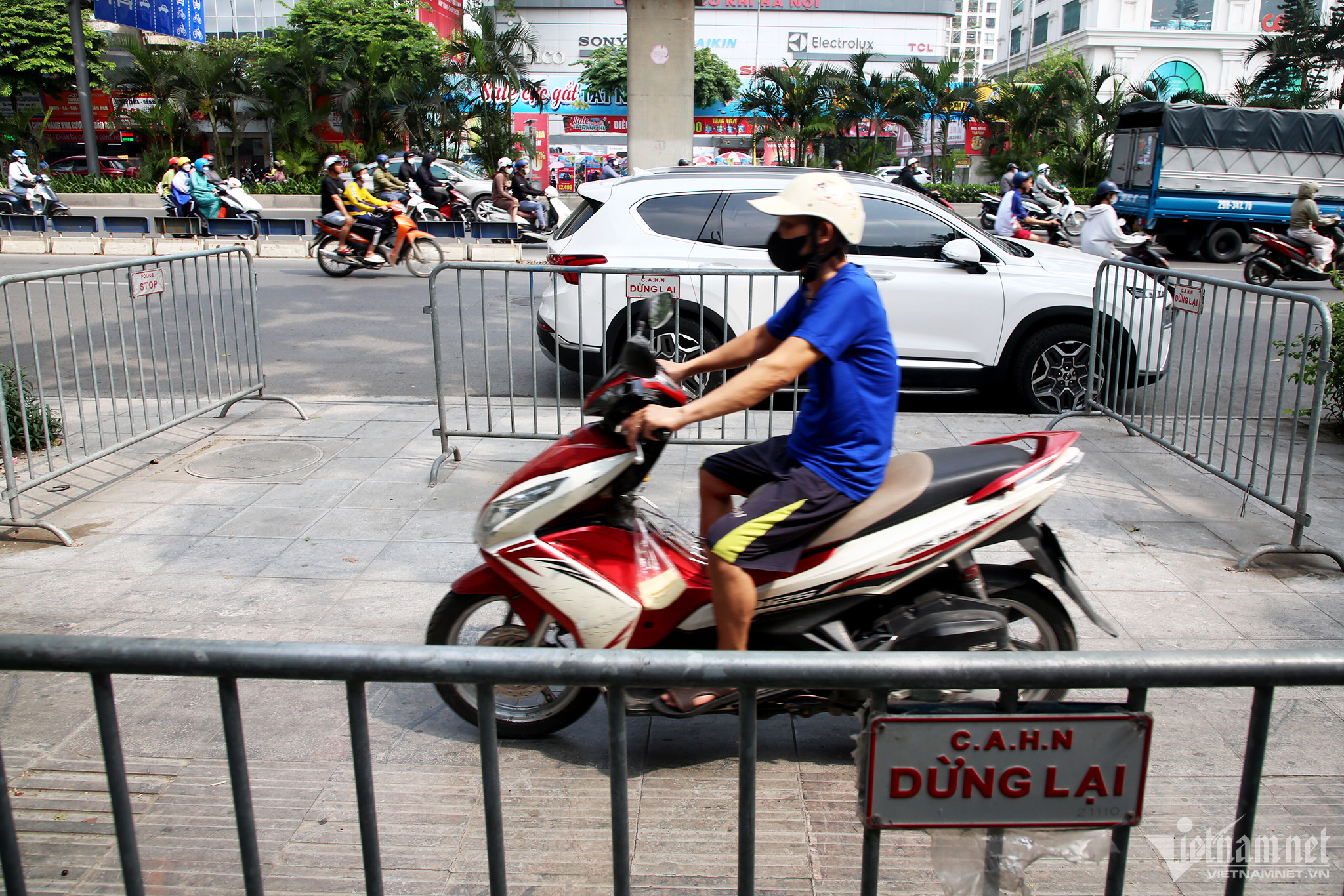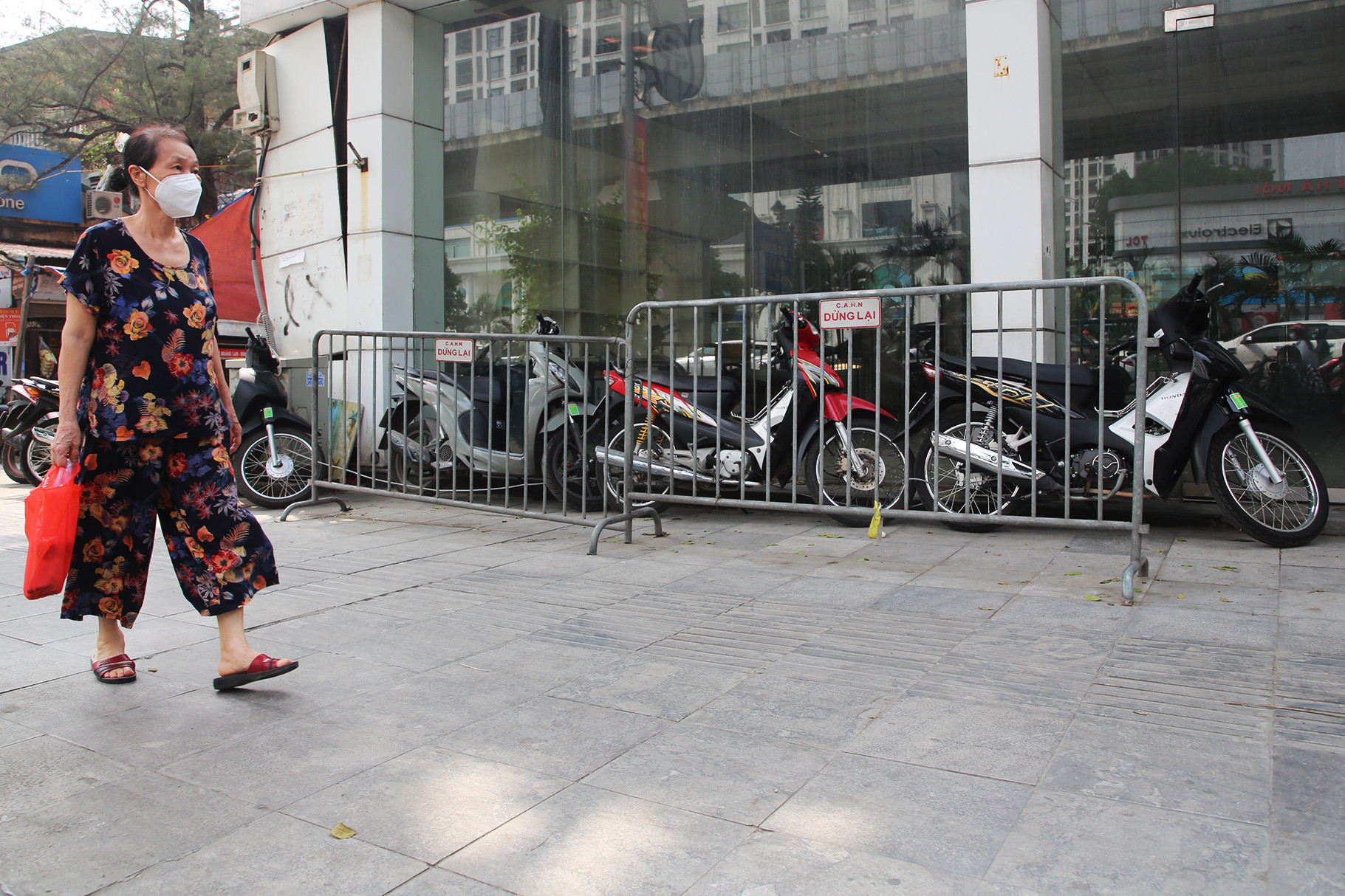 Tại vỉa hè đường Trần Phú (phường Văn Quán, quận Hà Đông), khoảng 100m rào chắn được lực lượng chức năng dựng lên áp sát bờ tường của Học viện An ninh Nhân dân. Tuy nhiên, hàng rào chỉ rộng 1/2 phần vỉa hè nên tình trạng xe máy đi lên vẫn diễn ra.
