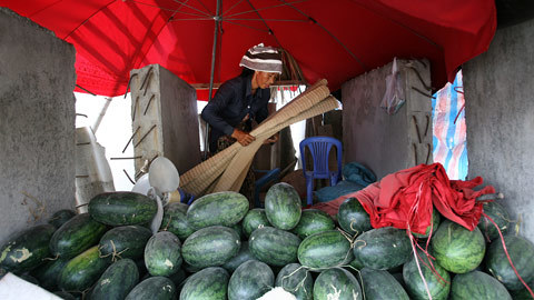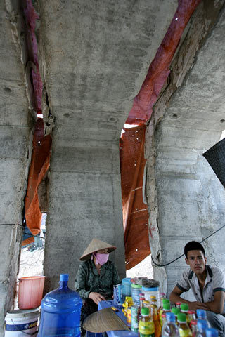 Để tránh cái nắng gay gắt ngày hè và bụi bặm dày đặc, những người bán hàng trên