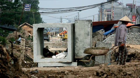 trên đoạn đường đang thi công Cầu Diễn – Nhổn, con đường đã gần chục năm nay