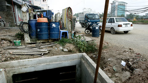 ngầm đợi thi công nằm rải rác khắp 4 cây số trên tuyến đường 32.