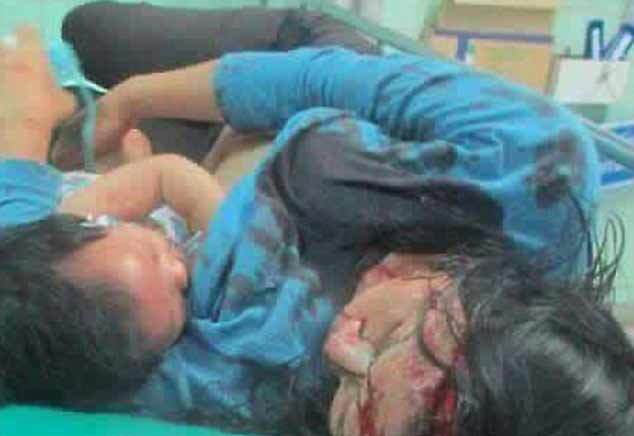 Hình ảnh một bà mẹ trẻ thương tích đầy mình nằm chờ được điều trị vẫn cố cho con bú sữa có lẽ là minh chứng rõ ràng nhất cho tình mẫu tử.