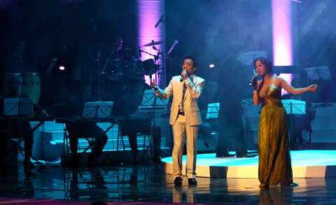 và nhận được sự cổ vũ nhiệt tình của khán giả khi cùng Việt Hoàn biểu