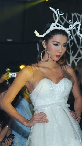 Cũng với sắc màu sương tuyết trắng bạc, Á quân Vietnam's Next Top Model 2011 Tuyết Lan mong manh như một tiên nữ trên biển. Thiết kế trong BST "Khi đại dương đóng băng" (NTK Nguyễn Văn Kỷ):
