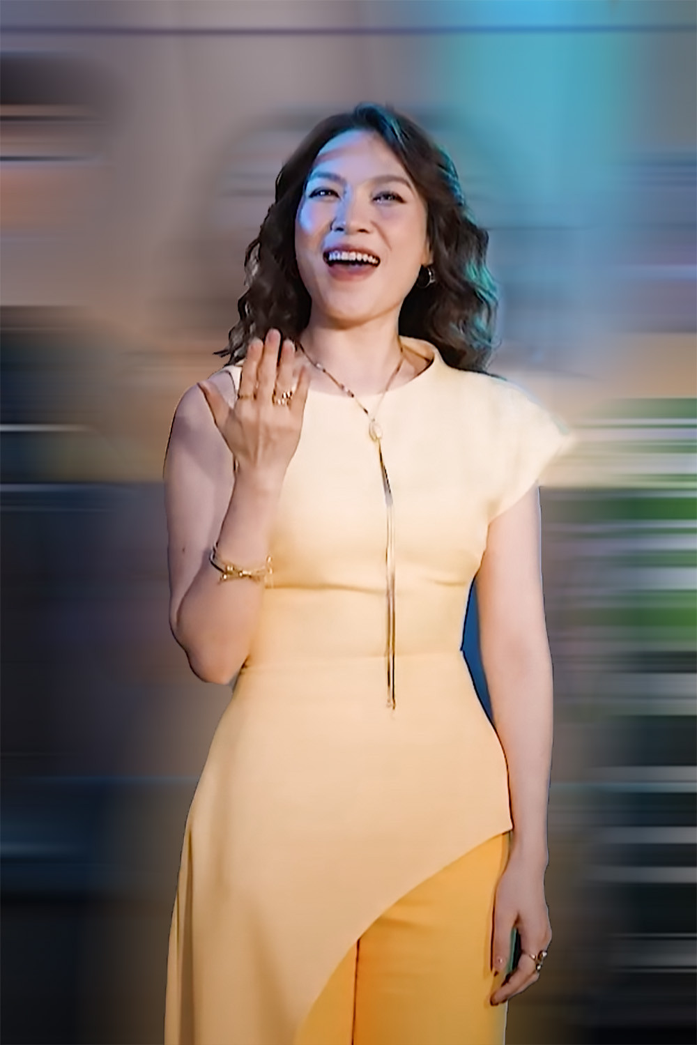 Nữ ca sĩ sinh năm 1981 khéo léo kết hợp phụ kiện như nhẫn, vòng cổ, khuyên tai, kính mắt... để tạo điểm nhấn cho vẻ ngoài của mình. Cô cho biết toàn bộ trang phục đều do ê-kíp riêng lên ý tưởng và thực hiện.