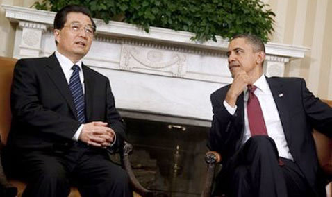 Tổng thống Mỹ Obama và Chủ tịch Trung Quốc Hồ Cẩm Đào tại Nhà Trắng. Ảnh: AP |