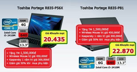 - Thinkpad X220-2AU, giá còn: 18.795.000đ. Bộ quà tặng bao gồm: giảm 2.500.000đ tiền mặt, Mouse không dây trị giá 450.000đ, Loa Lenovo trị giá 800.000đ, PM Kaspersky 1 năm trị giá 300.000đ, Túi xách chính hãng và Giảm giá 50% khi mua phụ kiện. Tổng giá trị khuyến mại trên 4.500.000đ