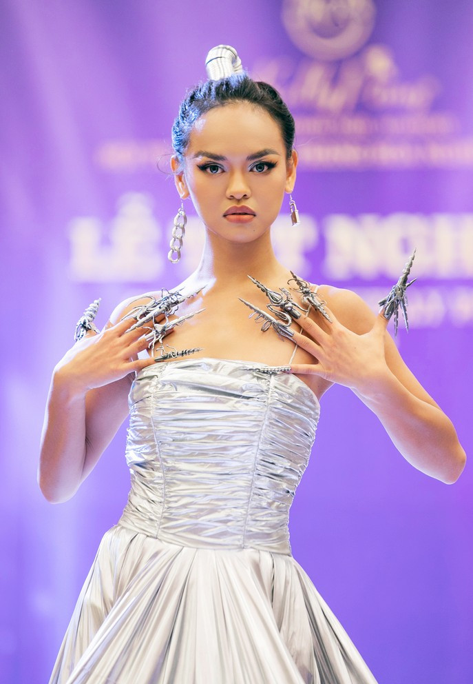 Các bộ nail được thực hiện theo đa dạng chủ đề từ san hô, bướm đến pha lê thạch anh, robot,..."Sự kết hợp này giúp cho mọi người có một cái nhìn mới về thời trang và khẳng định tầm quan trọng của nail", NTK chia sẻ. Các họa tiết dây xích, ổ khóa lấy cảm hứng từ hình mẫu người phụ nữ năng động hiện đại. Các nghệ nhân dùng kỹ thuật tạo hình vẽ nổi nail cao cấp kết hợp với những sản phẩm bột nổi đa sắc màu Fol, tạo nên họa tiết sinh động, nổi bật.