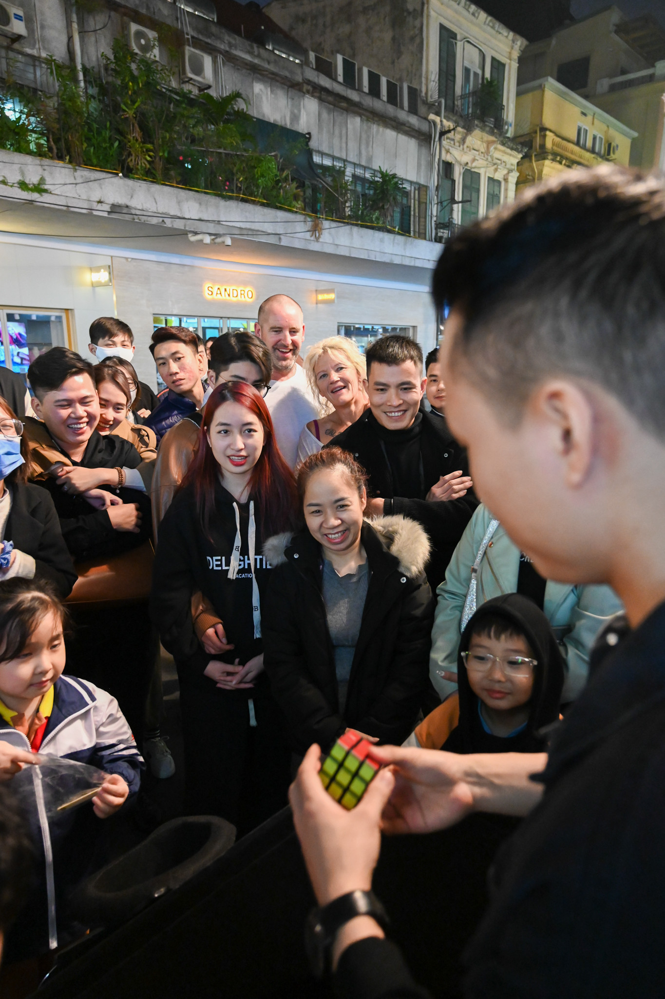 Công Tuấn chia sẻ, diễn trên đường phố khiến anh gần mọi người hơn, nâng cao năng lực, sự tự tin. Những động tác biến hóa, các câu đùa hài hước, nụ cười sảng khoái và sự tương tác gần gũi khán giả chính là “gia vị” làm nên nét riêng cho nam ảo thuật gia.