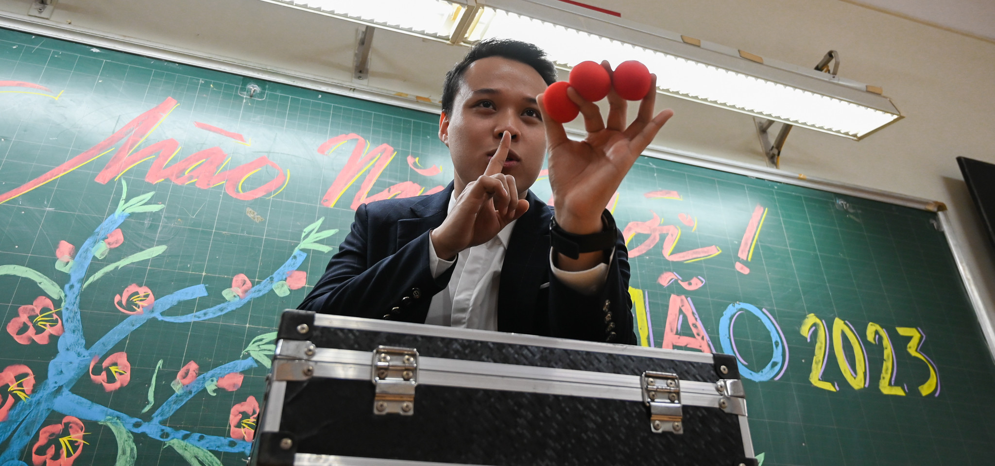 Công Tuấn cũng nhận dạy tại nhà cho những ai yêu thích ảo thuật. Đa phần học viên đều là người hâm mộ anh.