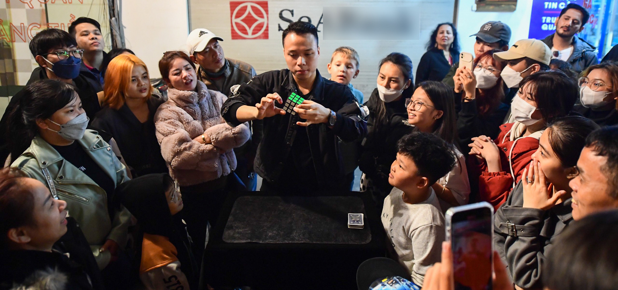 Trương Công Tuấn, một chàng trai đã có 9 năm theo đuổi bộ môn ảo thuật, trong đó 2/3 thời gian thường xuyên biểu diễn ngoài đường phố. Hiện 'hot boy' 29 tuổi sở hữu một kênh trên mạng xã hội với hơn 1,1 triệu người theo dõi.