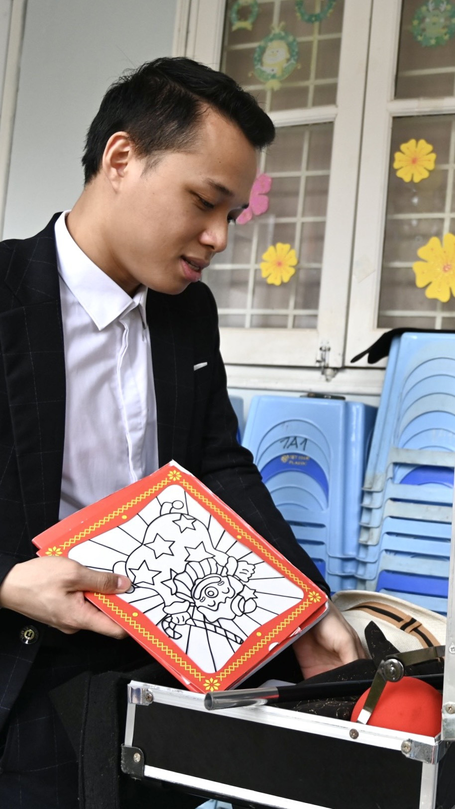 Để cho các bé không cảm thấy nhàm chán, anh thay đổi liên tục các màn diễn với nhiều đạo cụ khác nhau. Công Tuấn quan niệm rằng hạnh phúc là tạo được niềm vui cho mọi người.