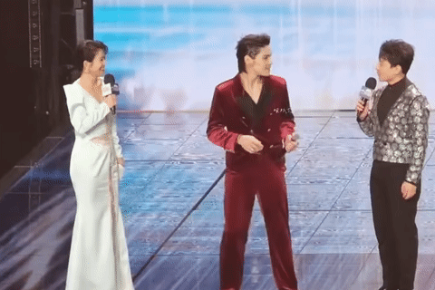 Nam ca sĩ cũng chỉ về phía người đã ném điện thoại và yêu cầu lực lượng an ninh đưa người này ra khỏi khu vực biểu diễn.