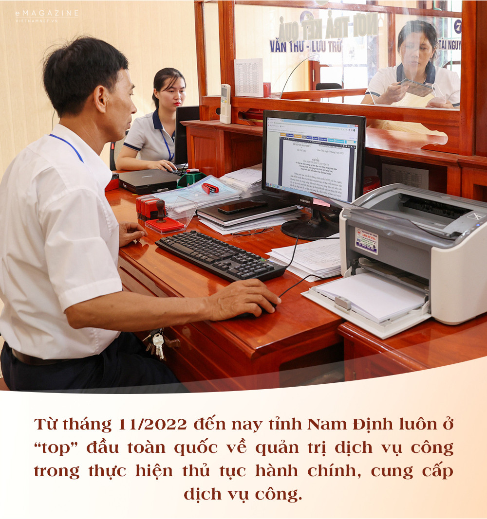 Cải cách hành chính của tỉnh chuyển biến tích cực với những kết quả rõ nét. Từ tháng 11/2022 đến nay tỉnh Nam Định luôn ở “top” đầu toàn quốc về quản trị dịch vụ công trong thực hiện thủ tục hành chính, cung cấp dịch vụ công.