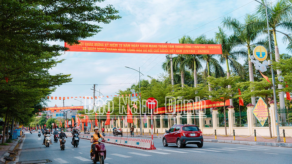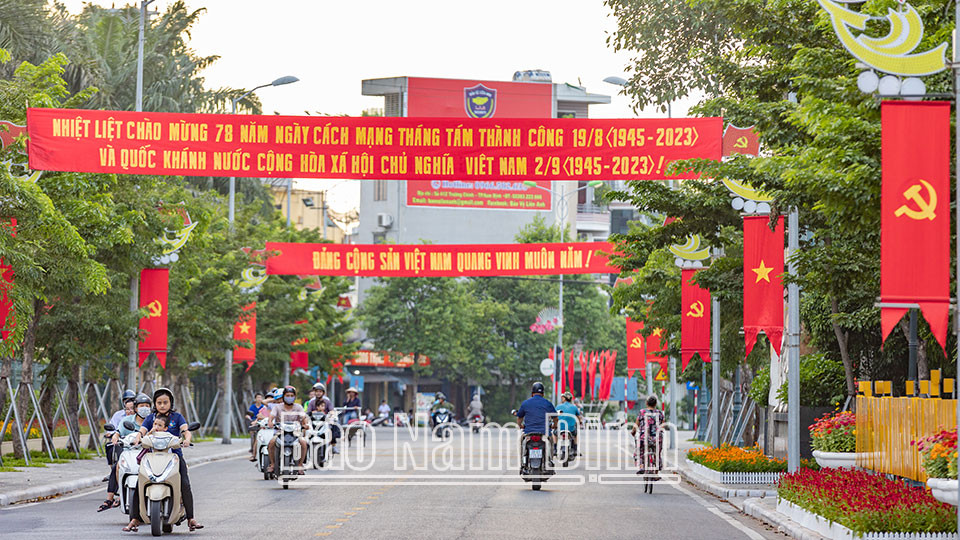 Sắc cờ hoa rực rỡ trên mọi ngả đường ở Nam Định chào mừng 78 năm ngày Quốc khánh (2/9/1945 - 2/9/2023.