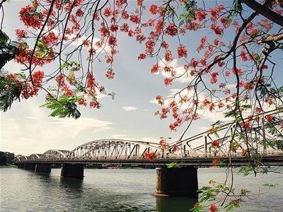 10. Mầu hoa phượng rực rỡ nơi cổng chùa Thiên Mụ