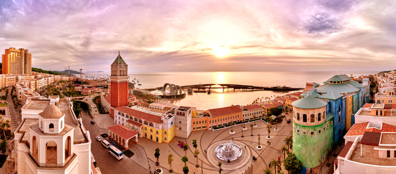 Sở hữu phong cách kiến trúc đậm chất Địa Trung Hải, mỗi góc phố tại thị trấn Hoàng hôn - Sunset Town, đều khiến du khách say mê bởi vẻ đẹp cổ kính, lãng mạn đậm chất Ý. Điểm xuyết trong đó là các công trình kiến trúc đặc sắc, chẳng khác nào những tác phẩm nghệ thuật độc đáo như: “bảo tàng nghệ thuật” Sun Signature Gallery do kiến trúc sư phù thủy Bill Bensley thiết kế; tháp đồng hồ Central Village hay các công trình tái hiện châu Âu cổ đại như cột đá cổ Pompeii, Khải Hoàn Môn, con đường gốm sứ…