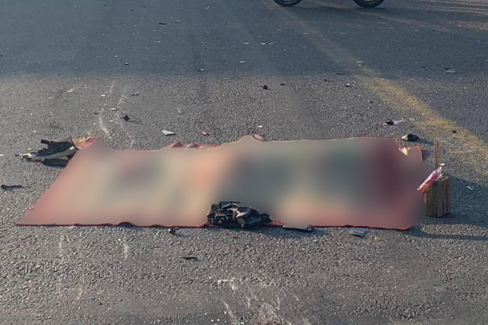 Vụ va chạm khiến em T. tử vong tại chỗ, xe máy hư hỏng nặng.