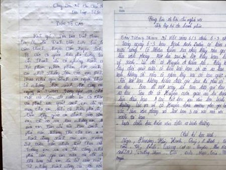 | Nội dung đơn tố cáo của gia đình nạn nhân và bản tường trình của 22 học sinh lớp 7D |