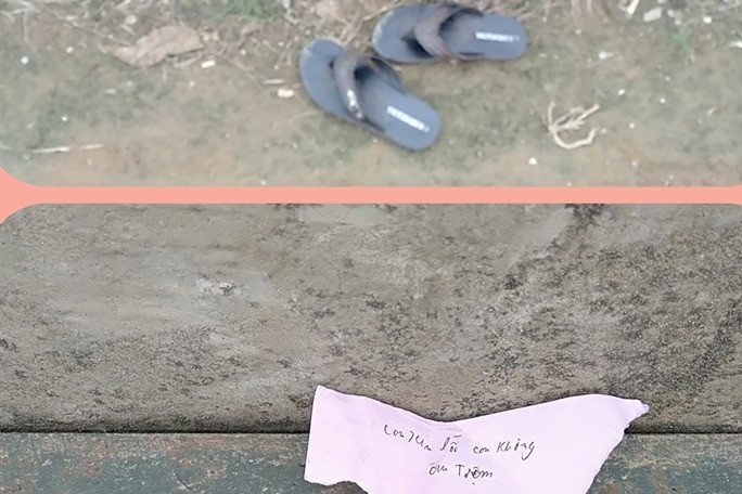 Theo ông Trưng, khoảng 15h ngày 14/4, người dân đi qua khu vực cầu sông Dinh, thị trấn Nông trường Việt Trung phát hiện một đôi dép và mảnh giấy: "Con xin lỗi, con không ăn trộm". Nghi có người nhảy cầu, người dân đã trình báo lực lượng chức năng.