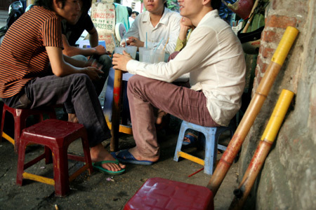 Cũng theo những người bán hàng nước khác thì hàng nước nào mà không có điếu cày là rơi ngay vào tình trạng ế ẩm. Do vậy nên bất kỳ quán trà đá nào cho dù thiếu bánh mì, kẹo lạc… nhưng không thể thiếu một “em điếu”.
