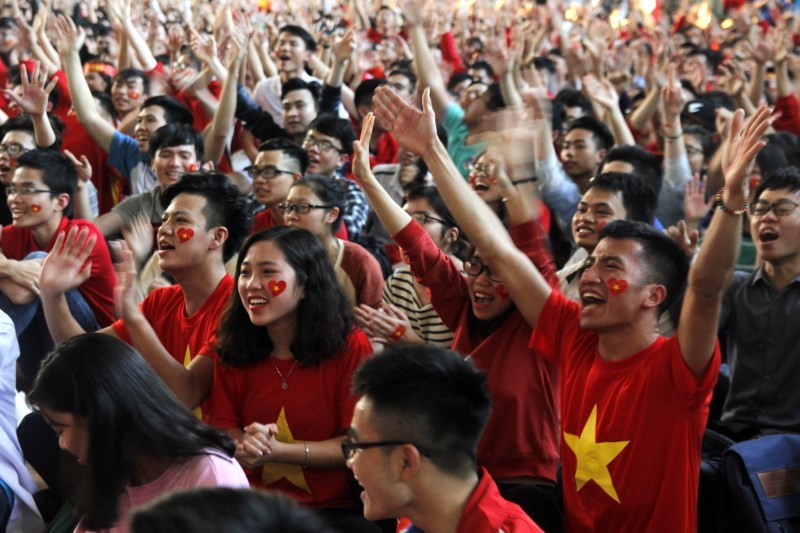 Hội trường Trường ĐH Kinh tế quốc dân, ĐH Bách khoa Hà Nội, ĐH Sư phạm Kỹ thuật TP.HCM, ĐH Nguyễn Tất Thành.... như "nổ tung" sau khi kết thúc trận bóng đá giữa U23 Việt Nam - Qatar.