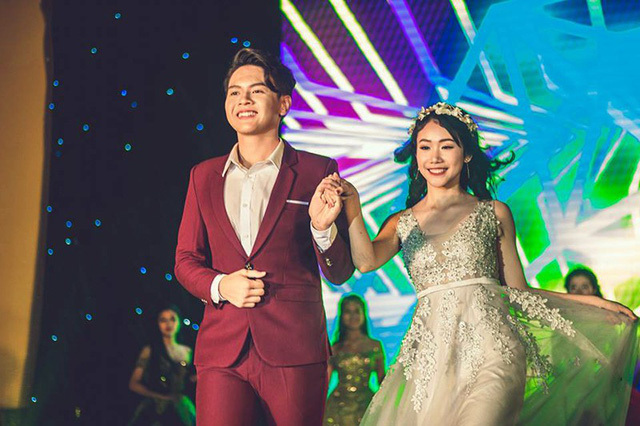 | Mai Nguyễn Thanh Tùng tự tin sánh đôi bạn thi Nguyễn Thủy Trang trong phần thi trang phục |