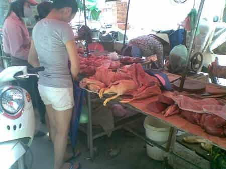| Thịt ế ẩm vì thời tiết nóng nắng. |