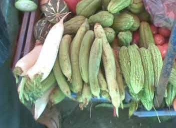 nghìn/mớ, rau muống 6 nghìn/mớ. Mướp có giá bán 40 nghìn đồng/kg.
