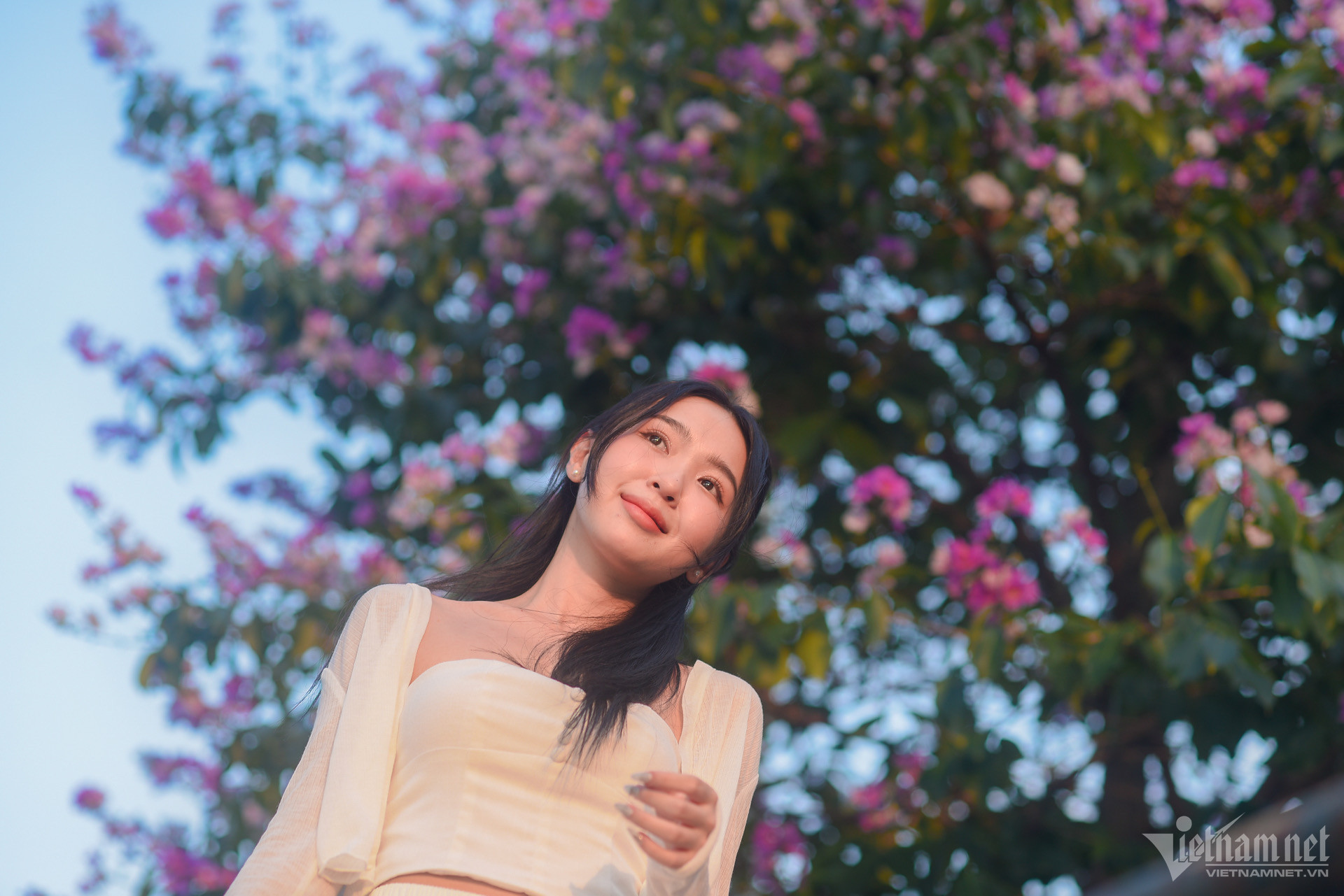 "Năm nay thấy mọi người chụp ảnh với bằng lăng đẹp quá nên tôi cũng tranh thủ qua đây ghi lại kỷ niệm khi còn ở Hà Nội”, Hiền Lương nói.