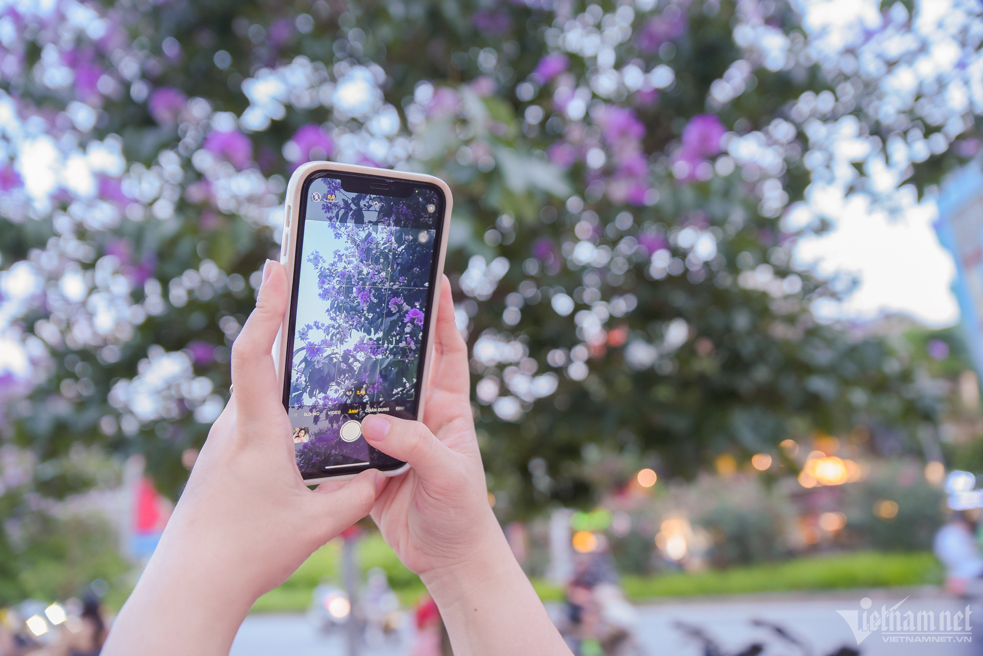 Bảo Ngọc (24 tuổi, Hà Nội) vô tình xem được những hình ảnh về đoạn đường bằng lăng tím ven hồ Hoàng Cầu nên đã tranh thủ ghé qua ngắm nhìn và check-in. "Lúc tới nơi tôi thấy bất ngờ vì đẹp quá, cả khung trời như được nhuộm tím bởi sắc hoa bằng lăng, trông rất dịu dàng và lãng mạn. Những ngày này tiết trời Hà Nội mát mẻ, dễ chịu nên không gian càng đẹp hơn”, Bảo Ngọc chia sẻ.