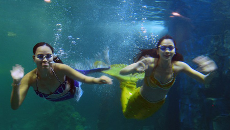 Khách xem các cô gái bơi lặn phía dưới mặt nước không hiểu vì sao lại có thể nín thở lâu được như vậy vẫn biểu diễn thuần thục. Tuy nhiên, các nàng tiên cá tiết lộ, trong quá trình bơi, mỗi lần phi thân từ đầu bể đến cuối bể là có thể ngoi lên mặt nước tranh thủ thở rồi lại chìm xuống. |