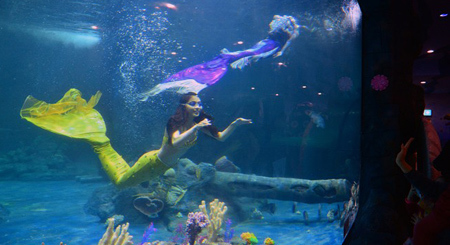 Mỗi buổi, hai nàng tiên cá chỉ biểu diễn khoảng 15 phút, có giờ cố định. Ngày thường vào lúc 11h và 15h30, thứ bảy, chủ nhật tăng cường thành 4 ca bơi. |