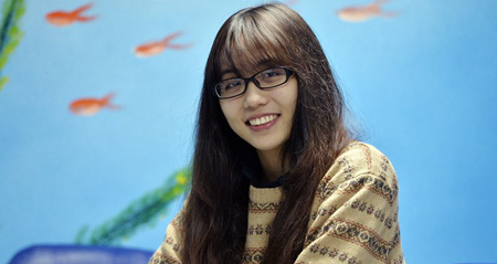 Nàng tiên cá Thúy Hằng trong trang phục đời thường. Cô gái sinh năm 1991 tiết lộ, muốn tìm người bơi giỏi cứ vào trường đại học Thủy Lợi. "Sinh viên trường này muốn tốt nghiệp trước hết phải biết bơi", Hằng nói. |