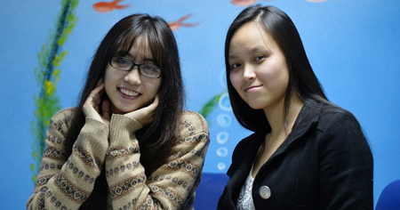 Hằng và Phương Anh trong buổi trao đổi với phóng viên |