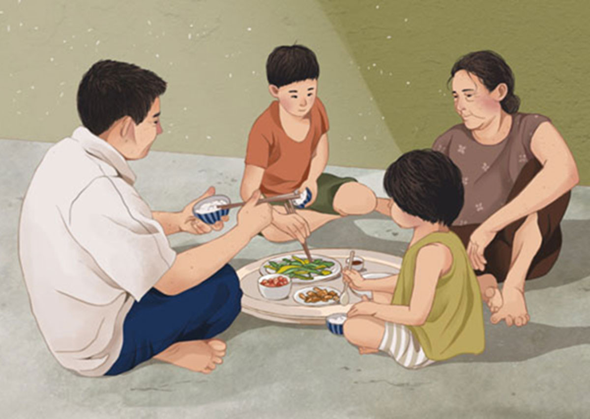 Mỗi bữa cơm có thịt, chúng tôi háo hức, vui vẻ và ăn uống ngon lành. Còn nhớ mỗi lần mẹ mang trứng ra soi, trẻ con vô tư nào biết gì nên chỉ mong có quả hỏng để được ăn.