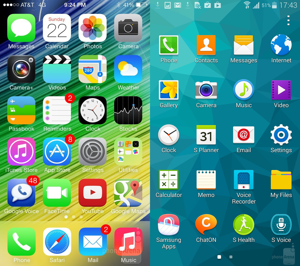 Tuy nhiên, iOS 7 vẫn được đánh giá là thân thiện, dễ học, dễ xử lý. Nó giống với việc bạn dạo bộ trong công viên theo một đường thẳng thay vì phải đi qua quá nhiều ngóc ngách là các nút bấm, trình đơn, bố cục trên TouchWiz. Ưu điểm của giao diện do Samsung phát triển là nhiều tính năng và mạnh mẽ.
