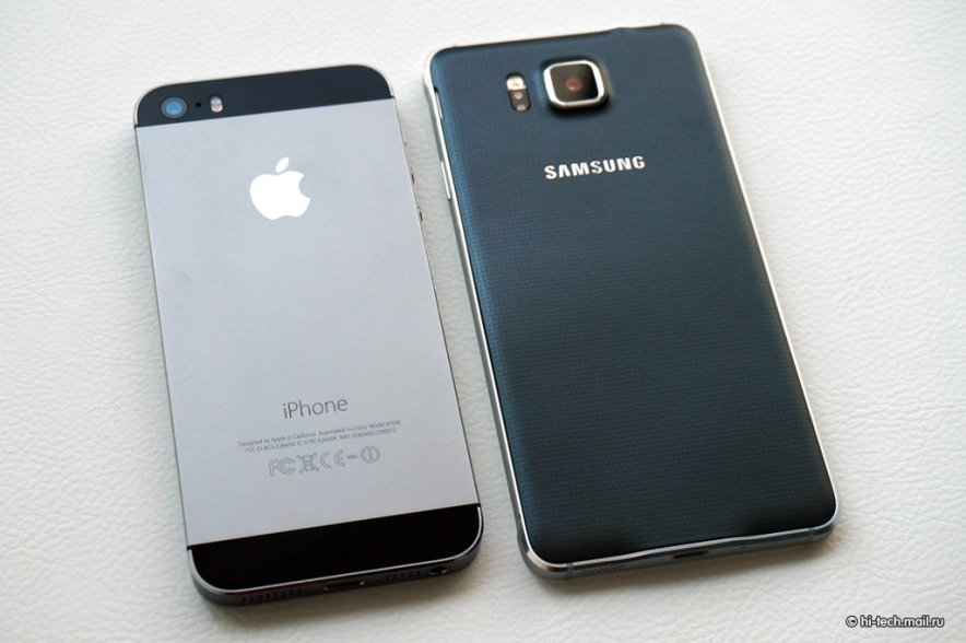 iPhone 5s có phiên bản đen, xám và vàng, còn Galaxy Alpha đa dạng hơn với màu đen, trắng, vàng, bạc và xanh.