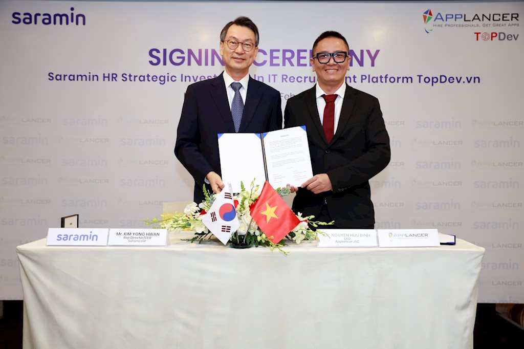 Ngày 17/2, tại Tp.HCM, nền tảng tuyển dụng IT TopDev đã nhận được đầu tư chiến lược đến từ công ty tuyển dụng việc làm số một tại Hàn Quốc là SaraminHR.