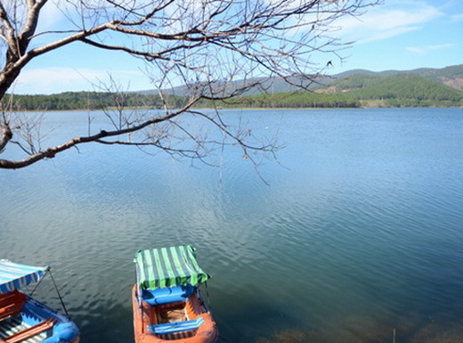 Hồ Tuyền Lâm cách Ðà Lạt 5km. Hồ bắt nguồn từ dòng suối Tía huyền thoại và nằm gọn gàng giữa rừng thông mênh mông. Mặt hồ quanh năm xanh biếc, hiếm khi có sóng lớn. Rải rác giữa hồ là những đảo nhỏ xanh ngát.