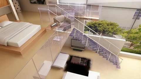 KTS Cấn Phú Minh (Công ty CP kiến trúc DMC Việt Nam) cũng cho biết, cầu thang vừa là nơi kết nối không gian, vừa là trục giao thông chính trong việc lưu thông giữa các tầng, do đó bạn có thể sử dụng lan can bằng vách kính để tăng thêm hiệu quả ánh sáng.