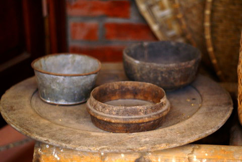 đất, bát đĩa gốm…; vại dưa cà; cối và chày giã cua; cối xay; các loại